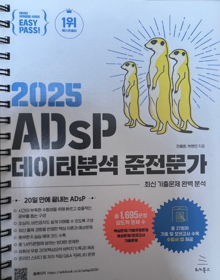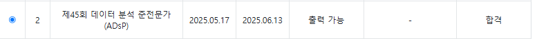 2025.06.05 - [자격증] - 제45회 ADsP(데이터 분석 준전문가) 독학 합격후기 (교재 추천, 비전공자 공부법) 제45회 ADsP(데이터 분석 준전문가) 독학 합격후기 (교재 추천, 비전공자 공부법)안녕하세요! 이