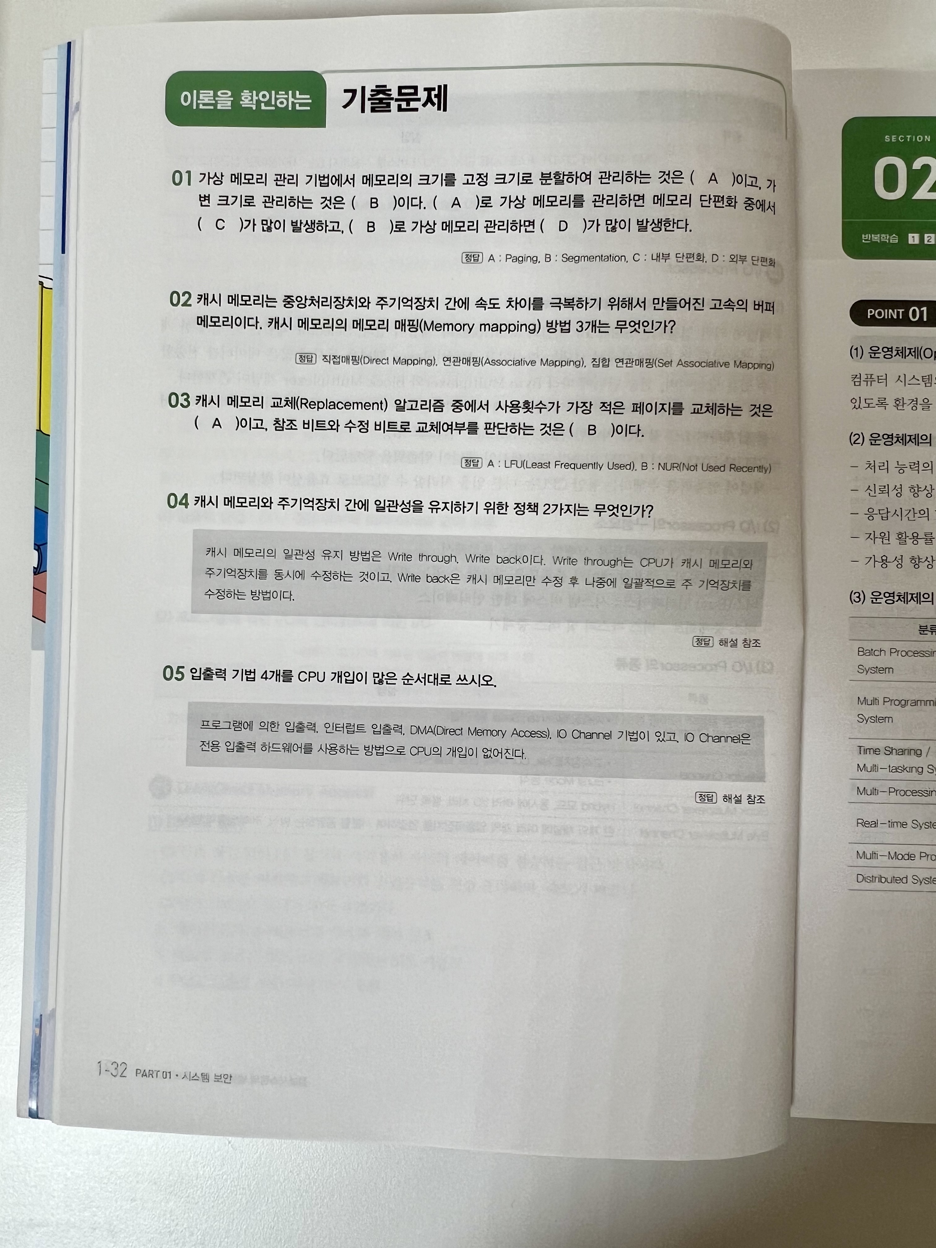 한 SECTION이 끝날 때마다 이론을 확인하는 간단한 기출문제 파트가 있습니다. 내가 개념을 올바르게 공부했는지 확인하기 위해 기출문제를 풀어볼 수 있습니다.