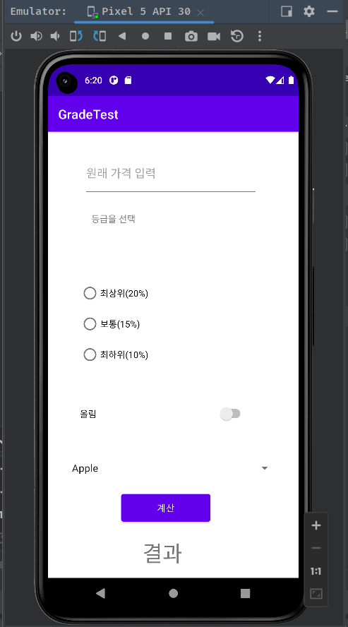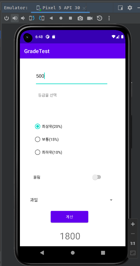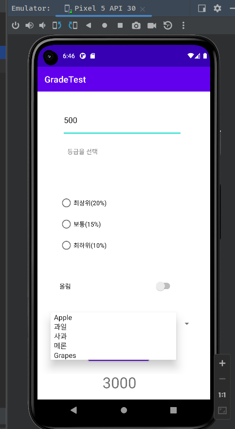 과일을 클릭했을 때 선택한 가격의 3배가 된다.
