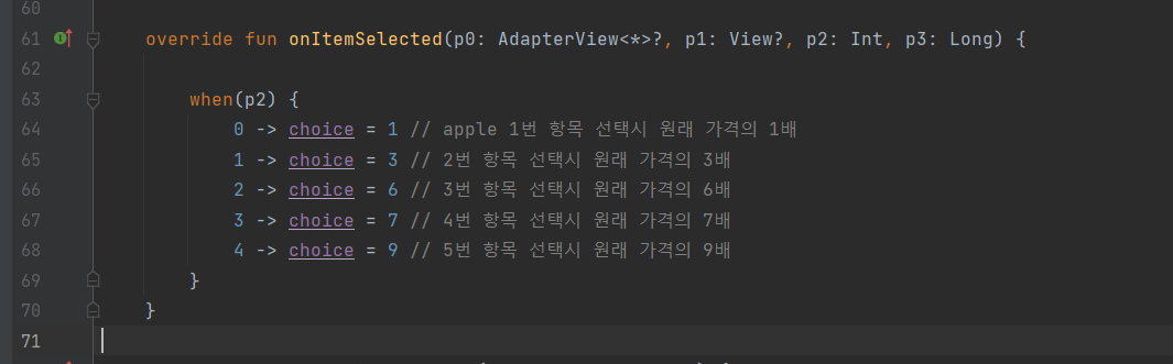 강제로 자료형 지정하고 싶으면 var choice : Int = 0 이렇게 쓰기도 한다.