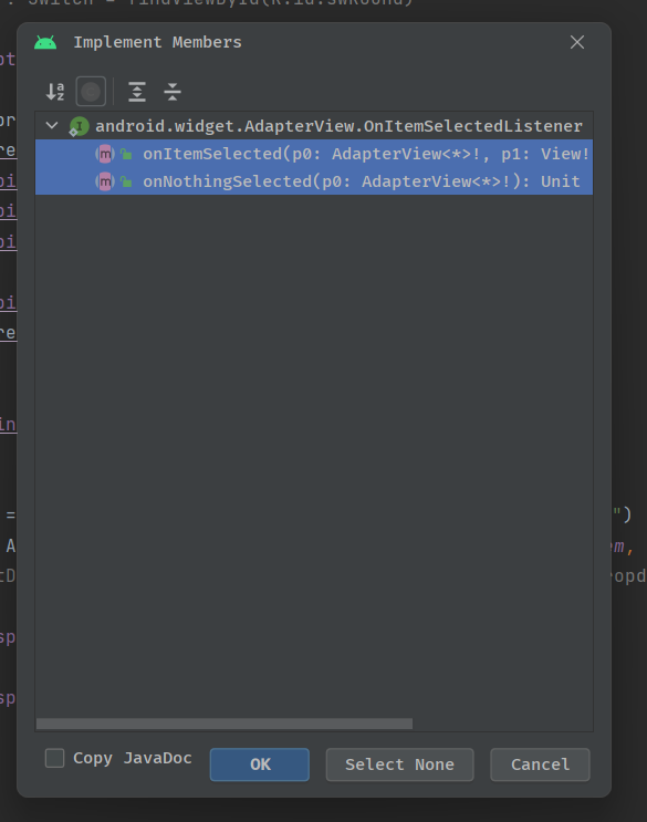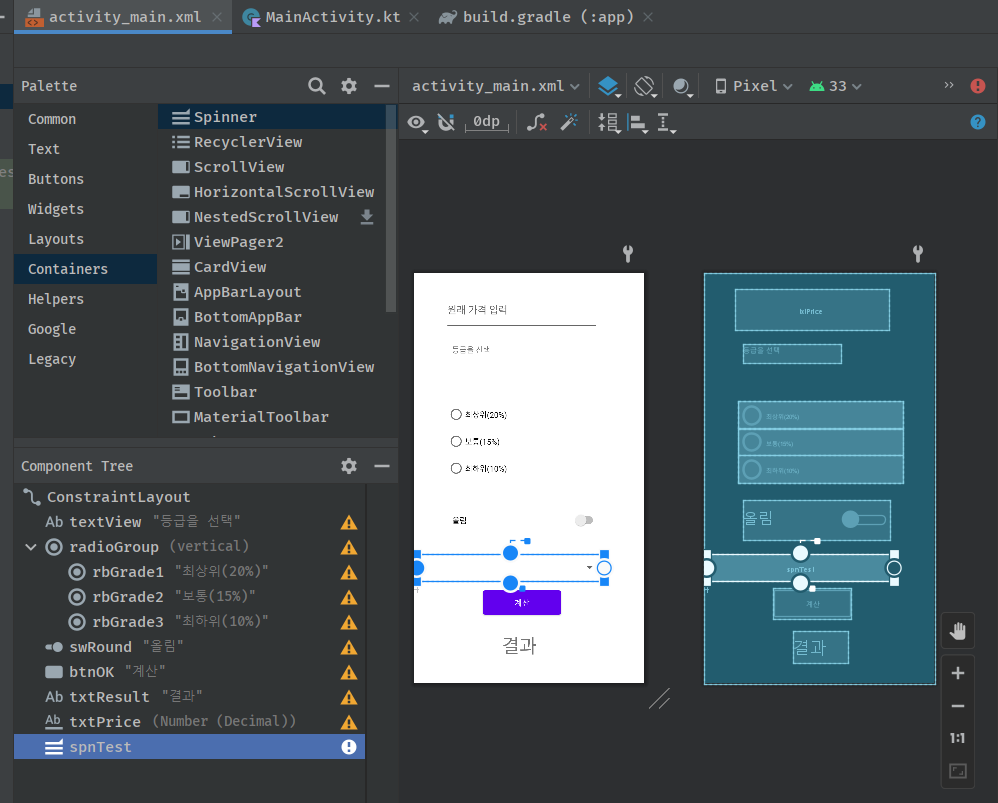 Acitivity_main.xml 에서 Containers > Spinner 추가