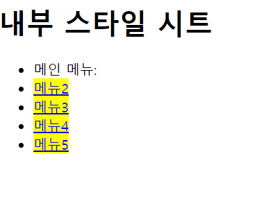 - 하위 선택자를 정의할 때는 상위 요소와 하위 요소를 나란히 씀.