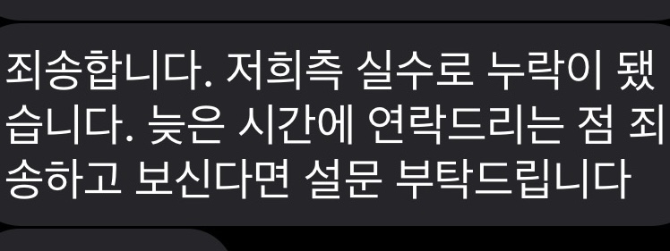 저녁에 올줄 알았는데 밤이 되어도 안 오길래 떨어졌나..? 하고 있었는데 문자가 와서