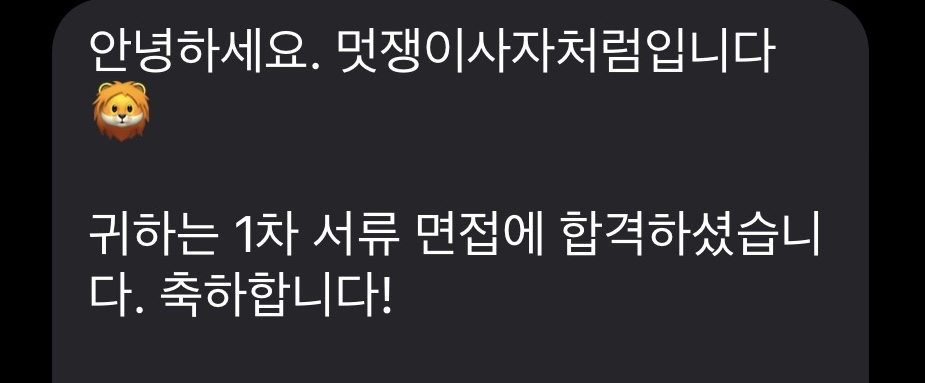 🦁멋쟁이사자처럼 대학 11기 최종 합격 후기 🦁 서류 합격 후기는 이전 글에 게시했다. 2023.03.26 - [일상] - [멋사] 멋쟁이사자처럼 대학 11기 서류 합격 후기 (+ 2번이나 떨어진 줄 알았던 썰...) [멋