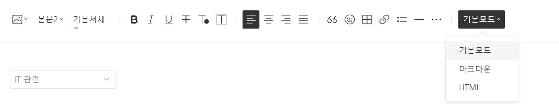 3. 위 기본모드에서 HTML으로 바꿉니다.
