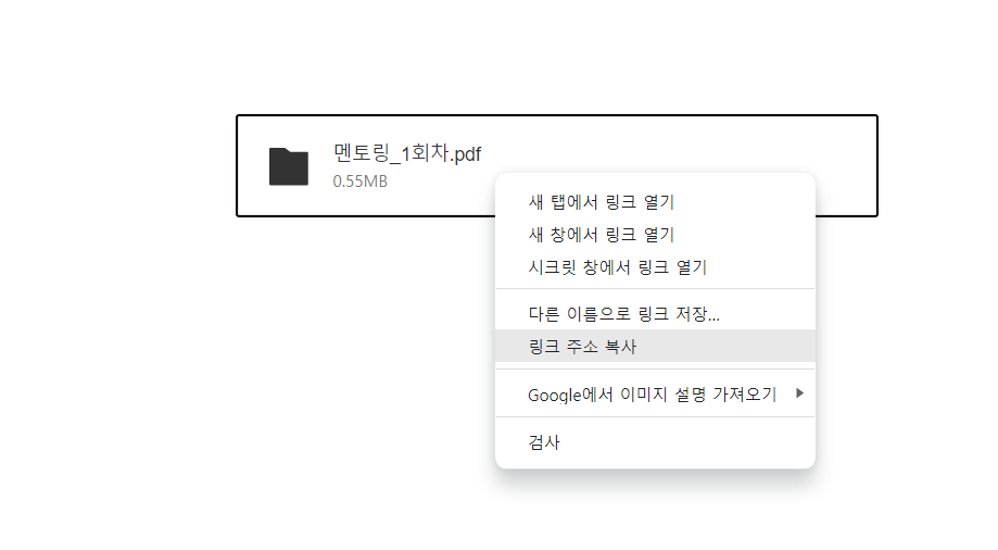 2. pdf에서 오른쪽 버튼 클릭해서 링크 주소 복사를 누릅니다.