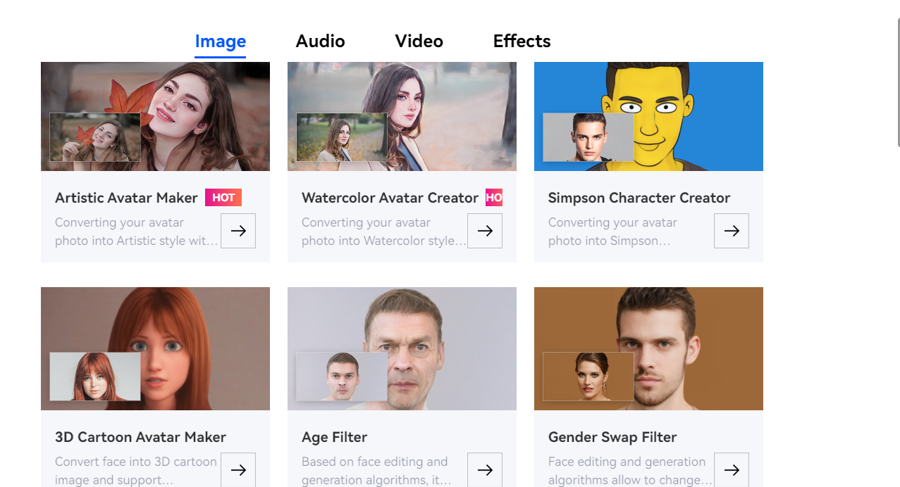 AILab supports most of the formats, including jpg, png, jpeg, webp, and gif. But the size of images should not exceed 5M, for it may lead to an upload failure.