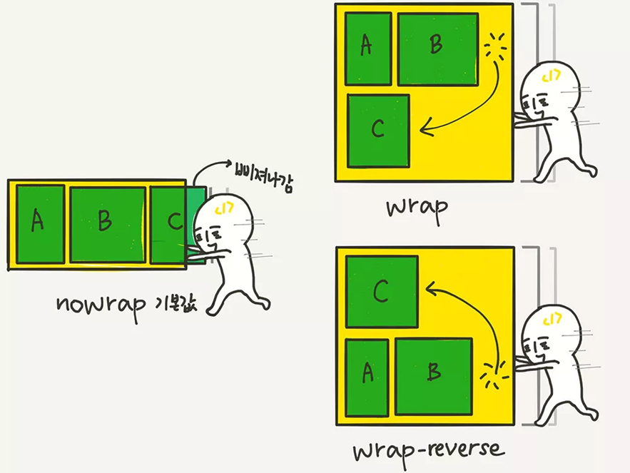 - 컨테이너가 더 이상 아이템들을 한 줄에 담을 여유 공간이 없을 때 아이템 줄바꿈을 어떻게 할지