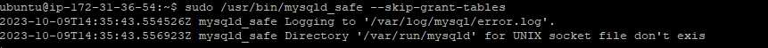 $ sudo /usr/bin/mysqld_safe --skip-grant-tables &