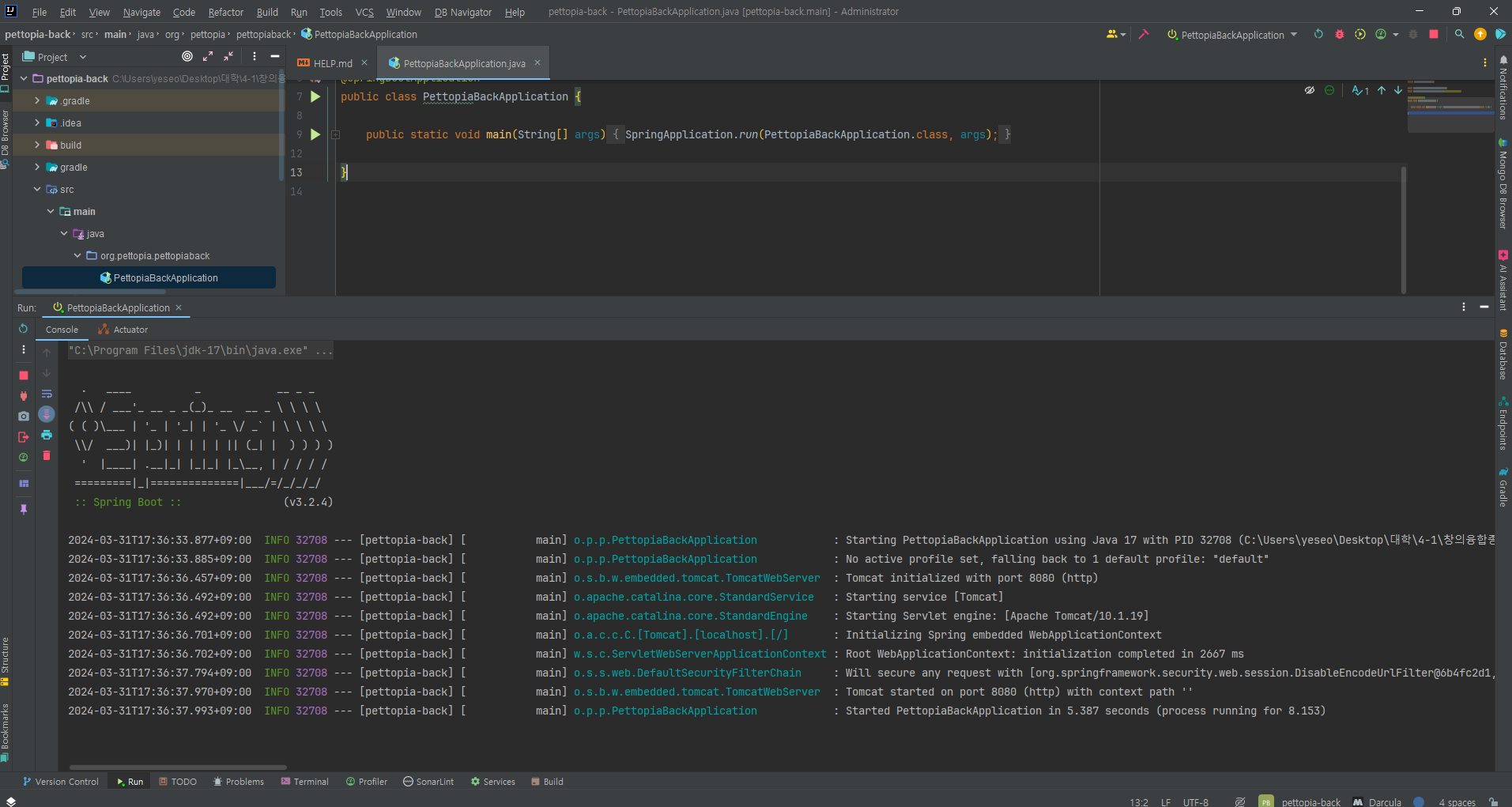 메인 클래스에서 run을 눌렀을 때