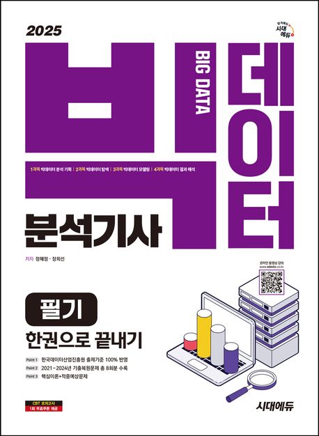 CBT 온라인 문제집+동영상 강의 무료제공, 본 도서는 최신 출제기준을 적용한 도서로, 빅데이터분석기사 필기 시험의 출제 경향을 철저히 분석하여 수험생들이 혼자서도 학습할 수 있도록 한 완